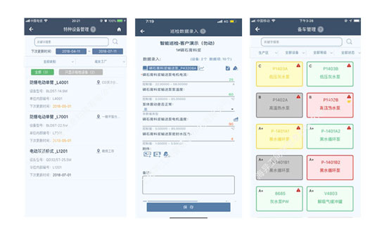 化工企業機電設備種類、數量繁多,檢修任務重,管理過程中會遇到的各種問題,比如隱患上報不及時,隱患詳情難記錄;多工種,多專業協同困難,整改工作分配交接不明晰;整改進度難跟蹤,過程難追溯;整改績效缺乏標準,難以量化,自主性、積極性難以提高,設備信息和檢維修記錄查詢分析困難等。機電設備運行情況對化工企業的生產效益有非常重要的作用,加強設備管理對化工企業提高設備運行效率,減少企業投資成本,提高企業生產效益等意義重大。