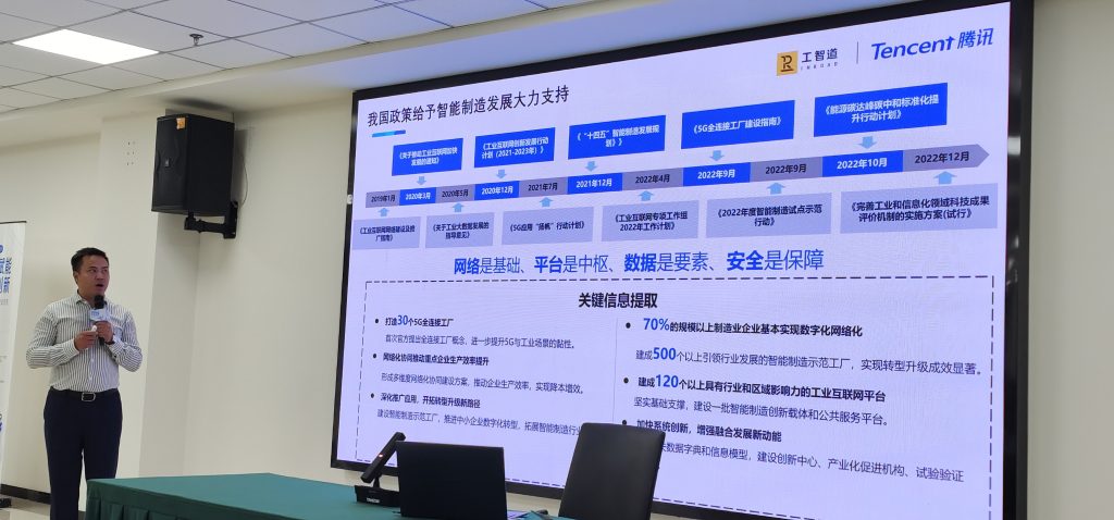 會上,工智道資深解決方案專家劉浩以化工行業現場管理全連接解決方案為題作了主旨分享,該方案由工智道與騰訊云聯合打造,依托騰訊云在連接、技術和生態等方面的優勢,結合工智道在化工行業的專業沉淀,涵蓋數據連接、現場業務、人員連接、數字孿生和可視化以及部署運維交付一體化等能力,助力化工行業現場管理打破數據孤島,實現橫向擴展、縱向集成、端到端生產的數字化升級。