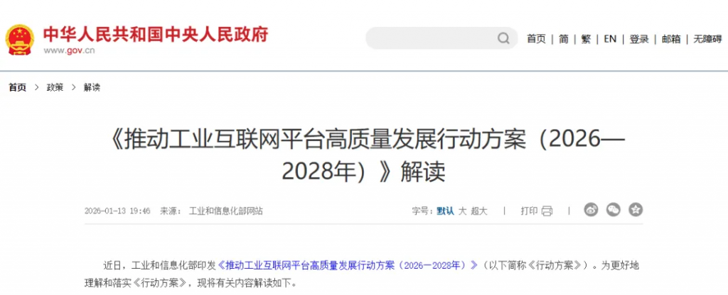 2026年伊始,工信部接連發(fā)布《推動(dòng)工業(yè)互聯(lián)網(wǎng)平臺(tái)高質(zhì)量發(fā)展行動(dòng)方案(2026—2028年)》與《“人工智能+制造”專項(xiàng)行動(dòng)實(shí)施意見(jiàn)》。