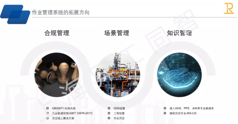 上海異工同智產(chǎn)品經(jīng)理楊林林介紹了“打造國內(nèi)外安全智能作業(yè)管理系統(tǒng)——作業(yè)管理系統(tǒng)的智能化拓展”,從合規(guī)管理、場景管理、知識管理等三方面進行升級,實現(xiàn)全方位的、更加專業(yè)、完善的安全作業(yè)管理系統(tǒng)。