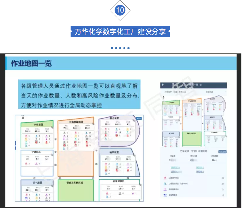 萬華化學(xué)(寧波)有限公司分享了“PTW電子化系統(tǒng)建設(shè)經(jīng)驗“,融合《GB30871-2014化學(xué)品生產(chǎn)單位特殊作業(yè)安全規(guī)范》,融入行業(yè)先進管理經(jīng)驗,通過流程優(yōu)化將現(xiàn)有作業(yè)申請單、特殊作業(yè)許可證和安全交底單業(yè)務(wù)內(nèi)容融合,搭建標準化的安全作業(yè)許可電子化業(yè)務(wù)流程(電子作業(yè)票),實現(xiàn)八大票證的快速審批、全業(yè)務(wù)覆蓋、高標準評價體系、安全風險全局管控的、可視化、標準化的作業(yè)管理,提高作業(yè)效率。